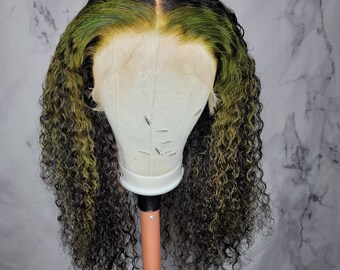 Green Skunk Stripe Hair Wig Colored Lace Front Wigs Body Wave Human Ha Lollyhair