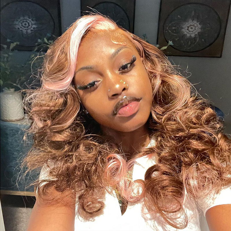 Strawberry Pink Chocolate Skunk Stripe Color Wig 13 4 Lace Front Wig Straight Human Hair Wigs Pre Plucked Natural Hairline New Arrival Pre Colored Wig Transparent Lace