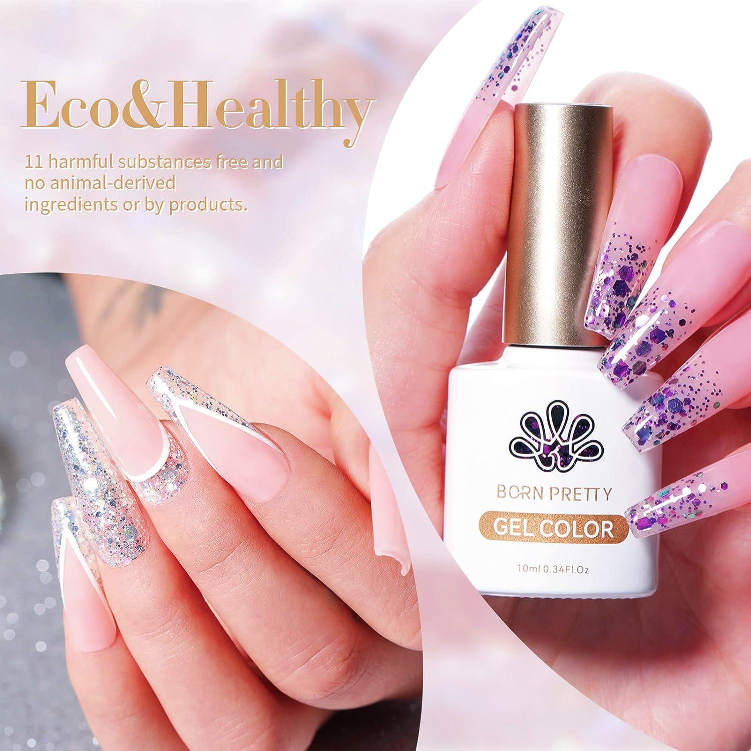 Born Pretty Glitter Sequins Gel Nail Polish Sparkly Shiny Pink Yellow Blue Green Gel Nail Polish Kit Soak Off Uv Nail Gel Gift Box Nail Art Manicure Varnish Kit 10ml 6pcs Gliter